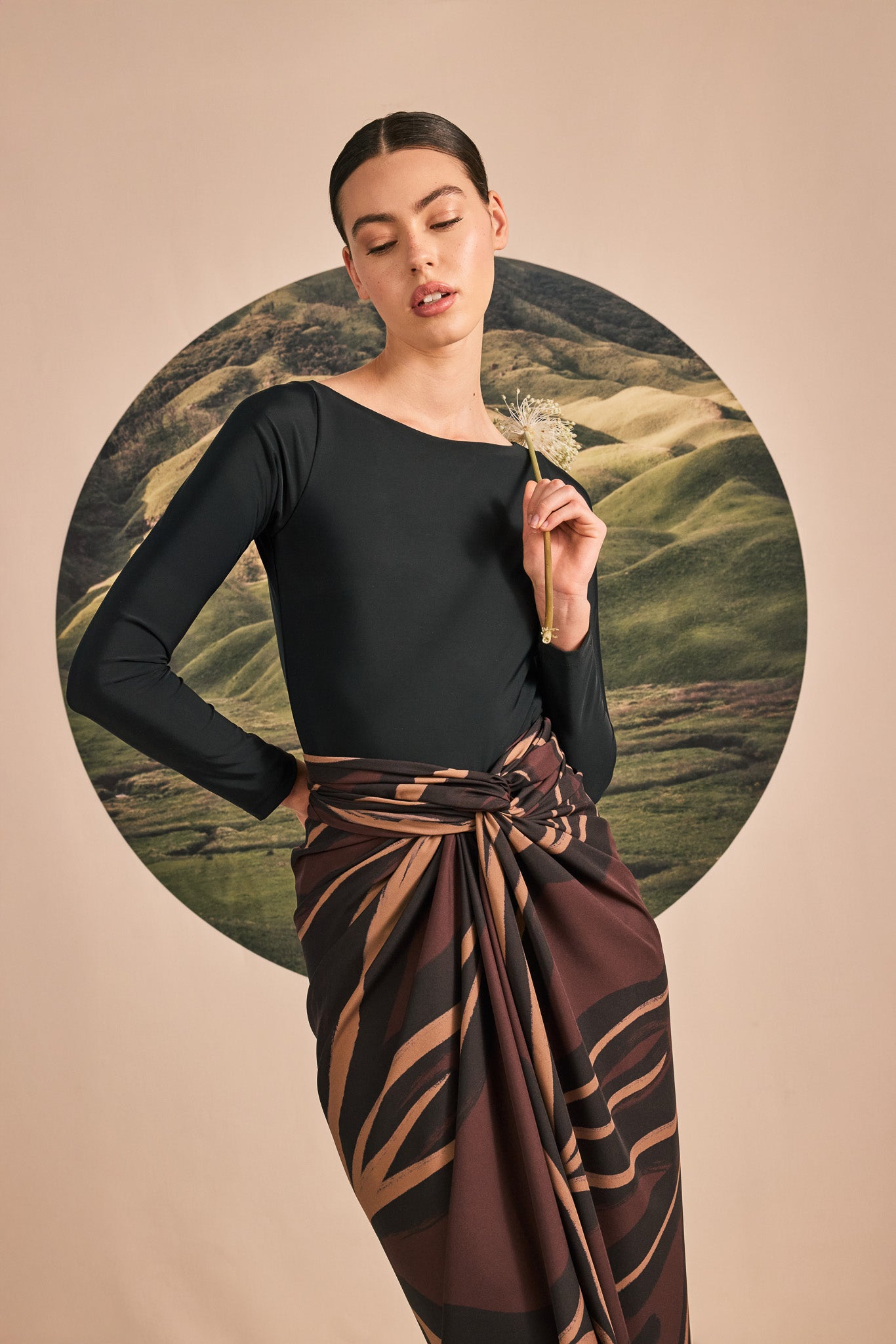 El clásico body manga larga pero con un "twist". Su diseño con abertura circular, te permite usarlo de dos formas: con la abertura en la espalda para un look minimalista o al revés, con el círculo al frente y un top strapless debajo para un look un poco más arriesgado. Su silueta manga larga y cuello bajo estilizan el cuerpo, mientras que la doble capa textil ofrece excelente ajuste y comodidad. Este body será tu nuevo básico favorito para elevar cualquier look. Combínalo con nuestros pareos, pantalones de tiro alto o jeans!