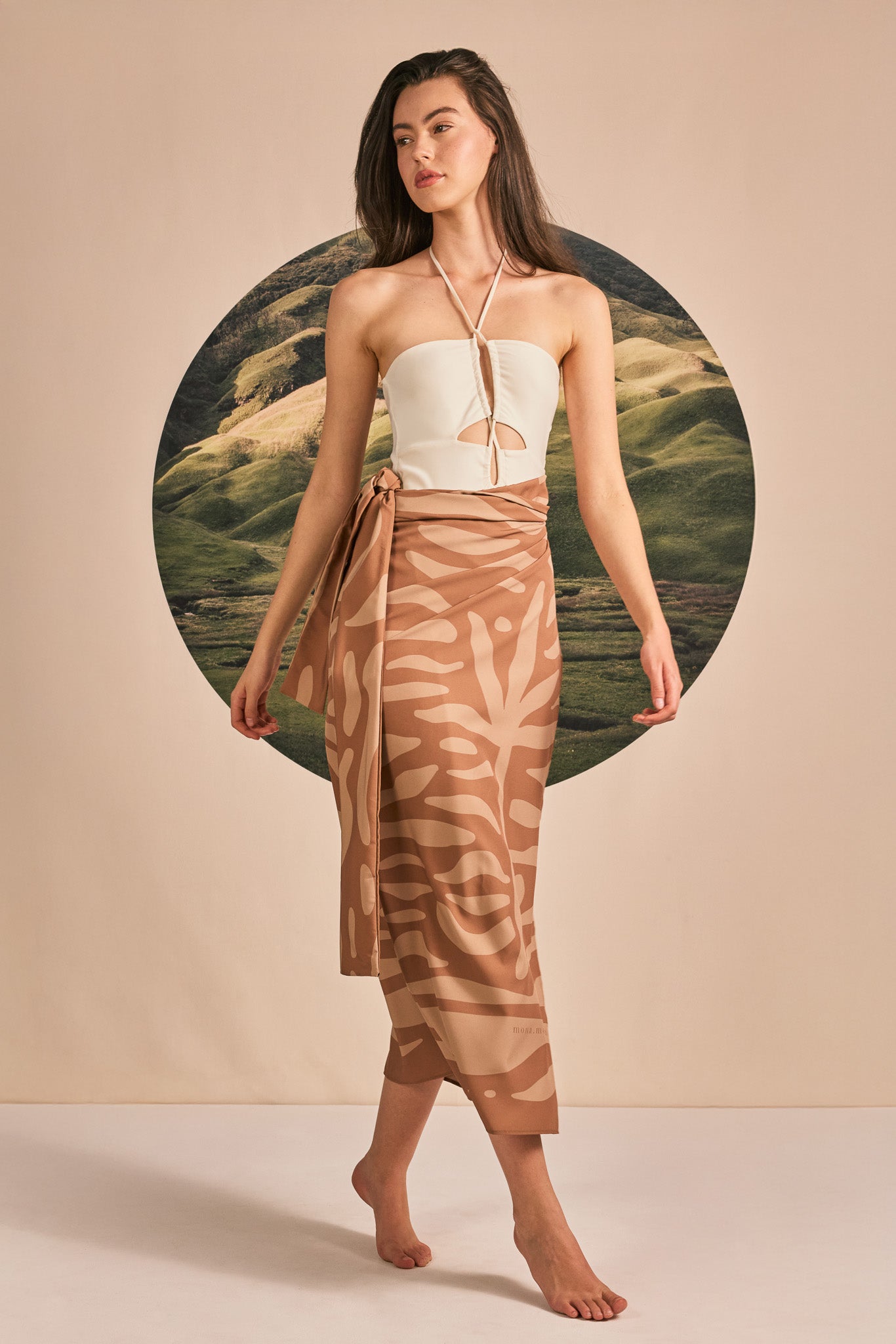 Su diseño con aberturas geométricas estiliza la silueta, mientras que la doble capa textil ofrece mayor ajuste y comodidad. Las tiras ajustables te permiten jugar con el escote: anúdalas para cerrarlo un poco o déjalas abiertas para un escote profundo en V. Gracias a su color crudo, este body se convierte en un básico atemporal que combina con todo, úsalo con cualquiera de nuestros pareos, pantalones tiro alto o con jeans para un look más casual.