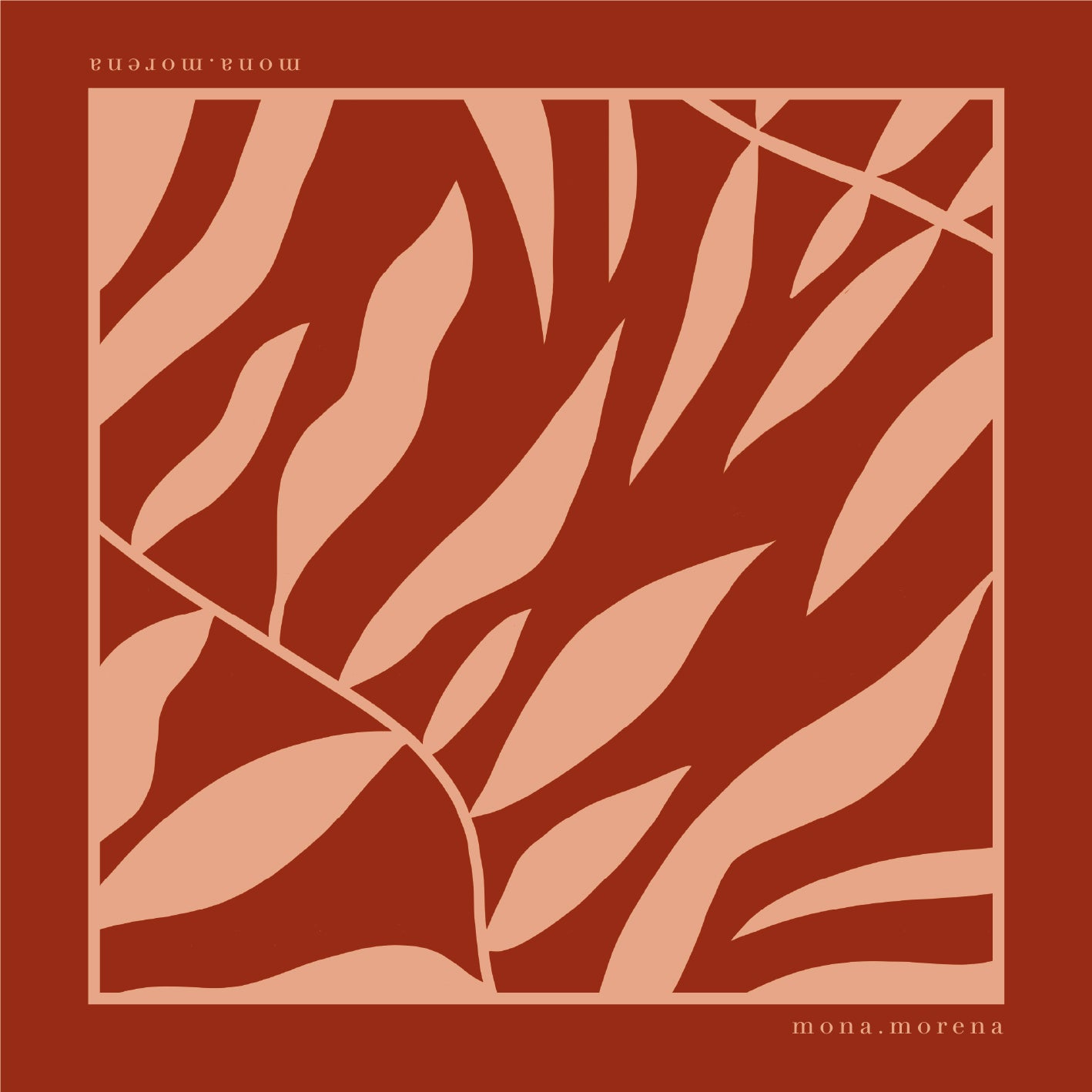 Pañoleta en seda, estampada con ilustración original botánica en tonos rojo y salmón.